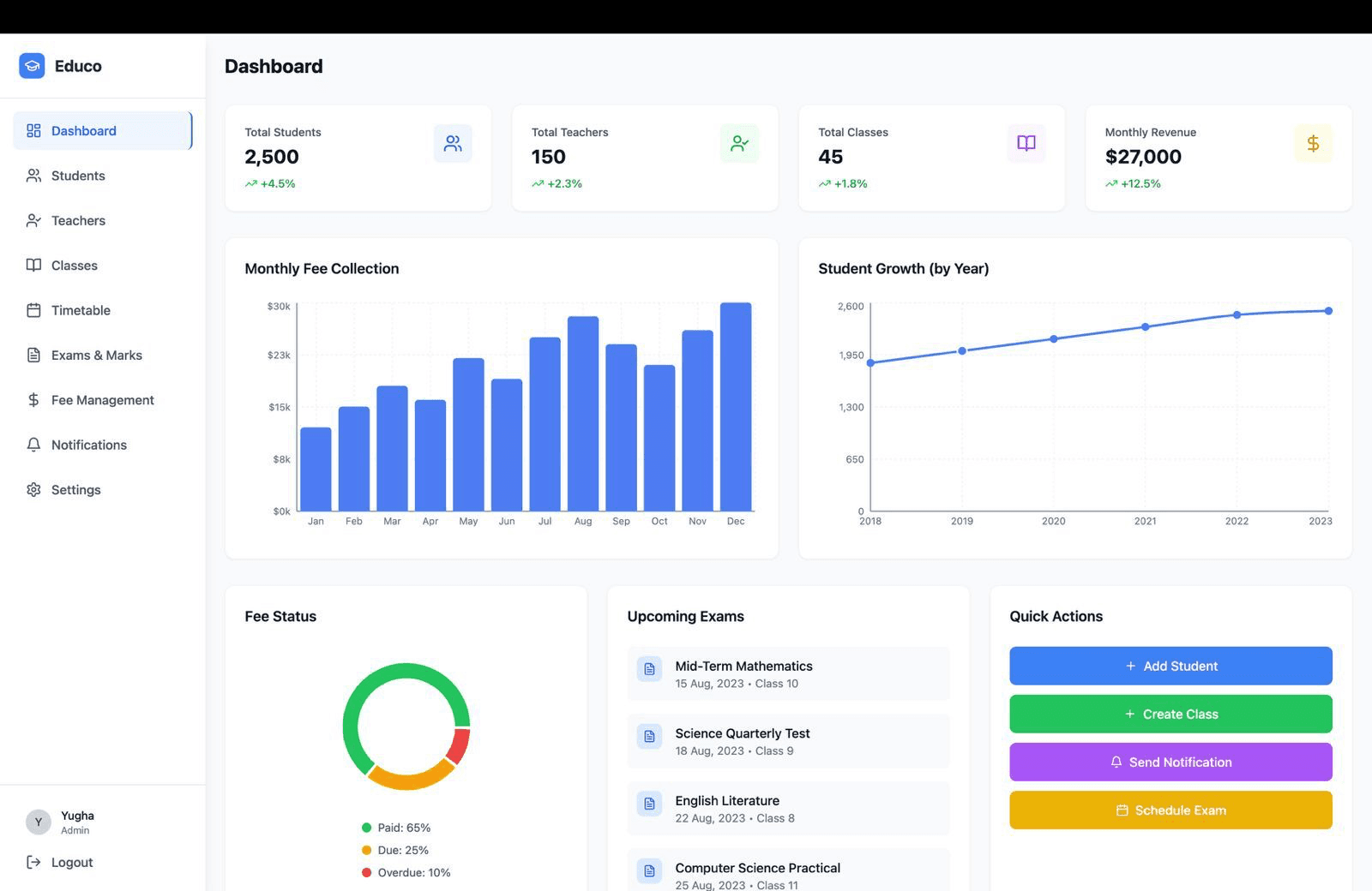 From assigning class teachers to generating timetables, uploading reports to sending announcements, the admin panel is your all in one control room. Save time, reduce errors, and run your school with confidence.